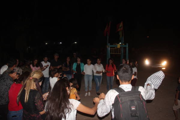 Сотни людей, включая представителей ассоциации героев, ДДО, ДПК-С, Института прав человека региона Евфрата, Левой партии, Движения за культуру и искусство демократической нации Курдистана, бойцов ОНС и ЖОС и боевых ветеранов пришли в парк героев, погибших в Суруче, чтобы принять участие в празднике.