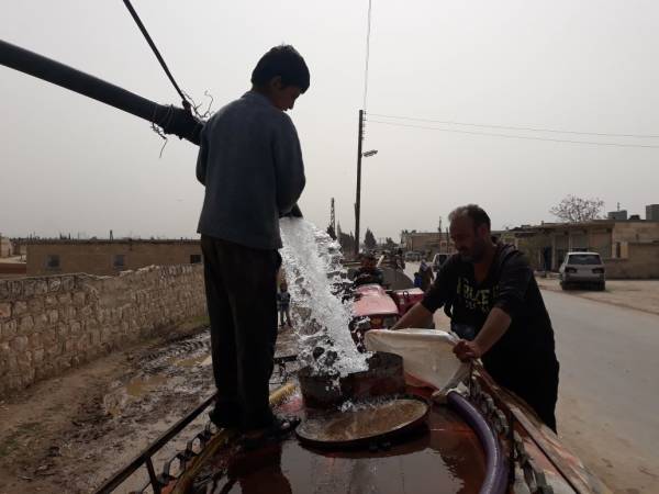 У Мухамеда Хасана есть трактор, который он привез из Африна, и на нем он привозит людям воду: «Здесь есть много проблем. Мы берем воду из колодцев и привозим ее людям. Как правило, перевозка одной цистерны воды стоит от 6 до 7 тысяч лир, но мы делаем это за 2,5 — 4 тысячи. Мы понимаем, что люди были вынуждены переехать, поэтому мы предоставляем им воду в обмен на топливо, которое мы расходуем при перевозке воды».