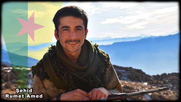 Румет Амед был родом из Кобани и рос во время революции в Рожаве. В этой атмосфере надежды на будущее и побед он и познакомился с курдским освободительным движением. Бойцы, приехавшие со всех концов Курдистана, чтобы защитить Кобани от ИГИЛ* в 2014 году, произвели на него неизгладимое впечатление.