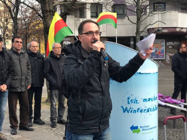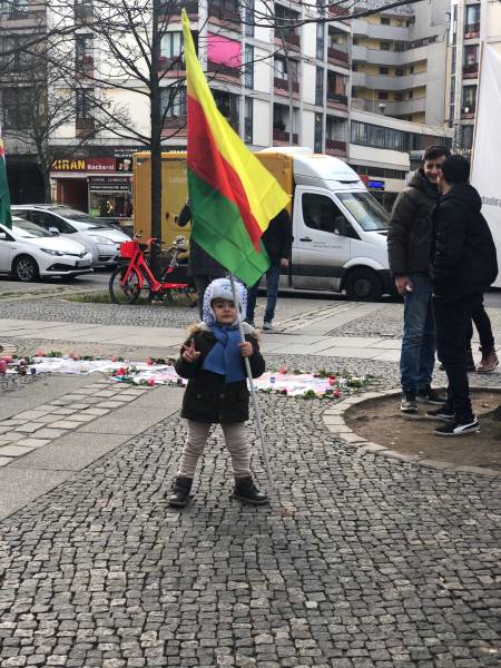 Курды собрались на площади Коттбуссер-Тор в Берлине, чтобы выразить протест по поводу давления иранского государства на курдов и мирных жителей, проживающих в Иране.