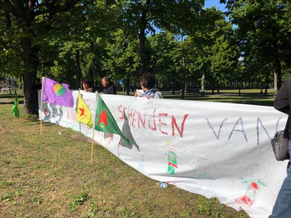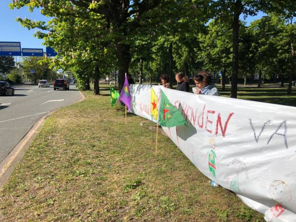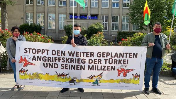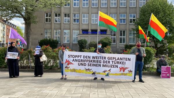 Акция началась с минуты молчания, затем активисты осудили грязные игры Турции против курдов, которая превратила пандемию коронавируса в возможность еще больше угнетать людей.