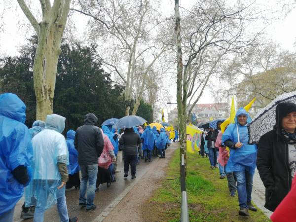 В рамках протестов на авеню Европы, где находится здание Совета Европы, был организован марш. Демонстранты преодолели километровую дистанцию, выразив требование освободить Оджалана на французском, английском, курдском и турецком языках.