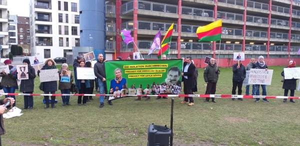 Активисты несли фотографии Лейлы Гювен и Абдуллы Оджалана и скандировали лозунги против изоляции.