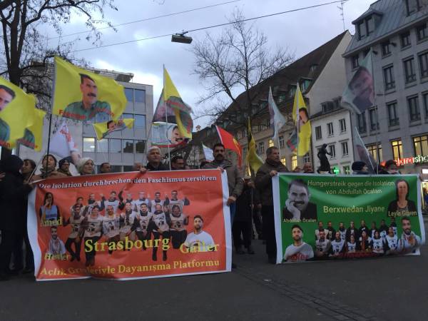 Встреча участников акции состоялась на площади Хохбург. Собравшиеся несли фотографии Абдуллы Оджалана, Лейлы Гювен и других голодающих.