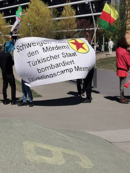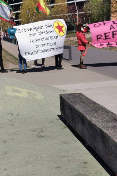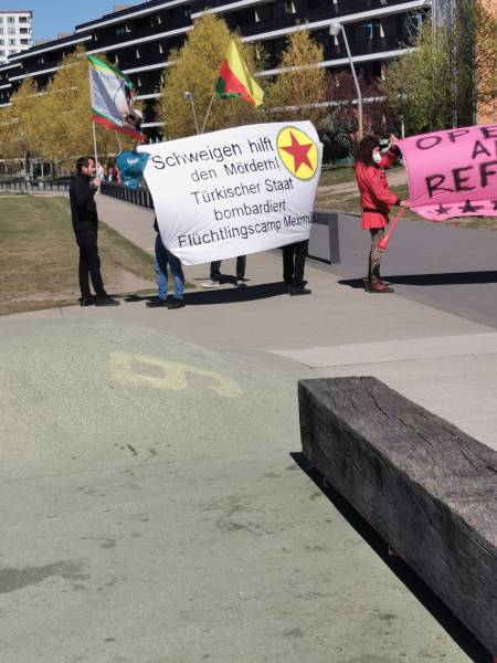 15 апреля турецкие боевые дроны атаковали территорию, прилегающую к лагерю беженцев в Махмуре. В результате атаки погибло трое мирных жителей. Несмотря на почти повсеместный карантин, связанный с распространением пандемии, во многих странах прошли протесты против случившегося нападения. Активисты курдского молодёжного движения ДРМ при поддержке местных интернационалистов провели акцию протеста в Берлине. Во время акции активисты также выразили свой протест против политики ЕС в отношении беженцев, представляющей смертельную опасность. Стихийная акция продлилась полчаса и завершилась демонстрацией.