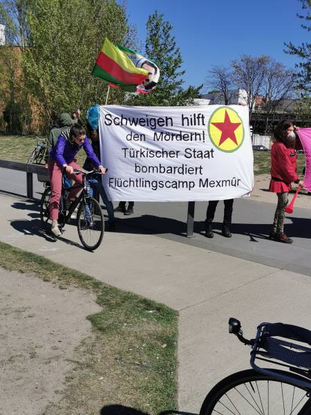 Активисты Движения революционной молодёжи вышли в Берлине на протест против турецкого нападения на лагерь беженцев в Махмуре (южный Курдистан).