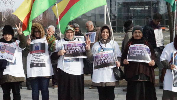 Протестующие держали транспаранты и фотографии участников голодовок и скандировали «Свободу Оджалану, статус Курдистану», «Слава Лейле Гювен!» и «Да здравствует революционная солидарность!».