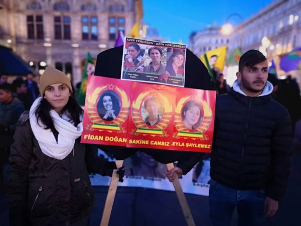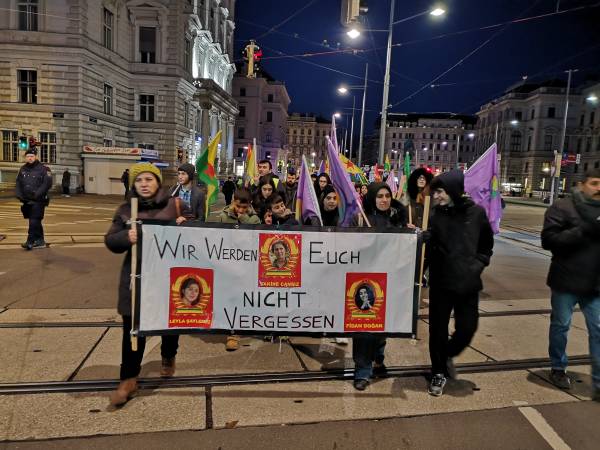 Марш, который закончился перед французским консульством в Вене, был организован, чтобы воздать должное и потребовать справедливости для трех революционерок, убитых в Париже 9 января 2013 года. Курды и их друзья собрались на Оперной площади, чтобы присоединиться к маршу, организованному Венской демократической курдской общиной.
