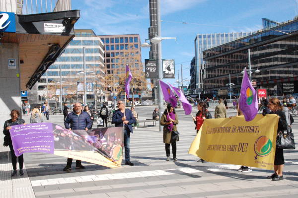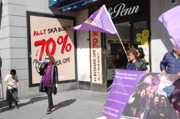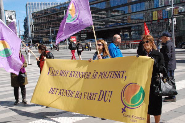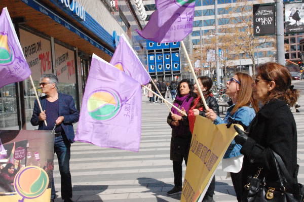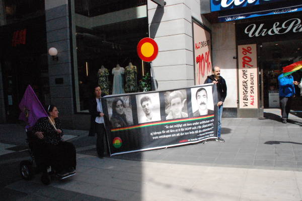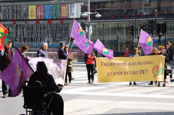 Группа курдов собралась на Дроттнингсгатан, самой оживленной улице Стокгольма. Активистки выражали протест по поводу насилия в отношении женщин.
