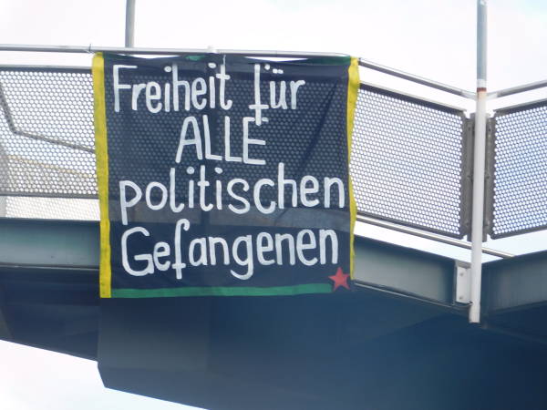 Активисты в Штутгарте провели акцию в знак солидарности с политическими заключёнными, которые посажены за решётку из-за своих взглядов и на которых не распространяется действие закона о досрочном освобождении, принятом не так давно парламентом Турции. Активисты разместили на мосту Лурдвигсбург-Штутгарт плакат с надписью: «Свободу всем политическим заключённым!»