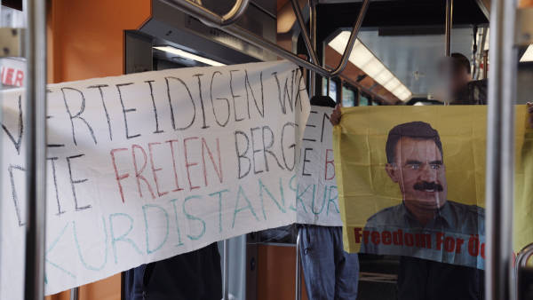 Группа революционной молодёжи, а также Движение революционной молодёжи (ДРМ) возглавили акцию, неся плакаты, на которых было написано на немецком «Защитими свободные горы Курдистана!» и «Выступим вместе против турецкой оккупации южного Курдистана!». Активисты также несли фотографии курдского национального лидера Абдуллы Оджалана.