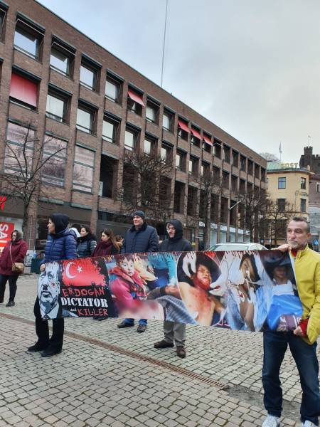 Курды и их друзья собрались на площади Сергельсторг в центре города, неся фотографии курдского национального лидера Абдуллы Оджалана, флаги РПК (Рабочей партии Курдистана), ПСЖК (Партии свободной жизни в Курдистане), ОНС / ЖОС (Отрядов народной самообороны / Женских отрядов самообороны) и жертв турецкого государства.