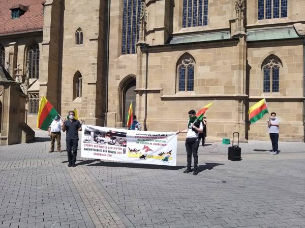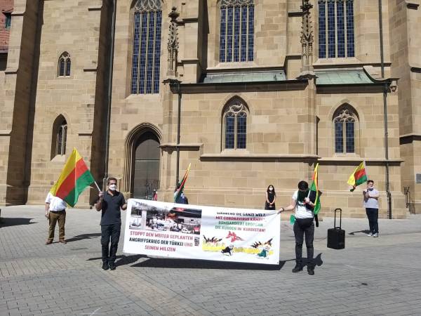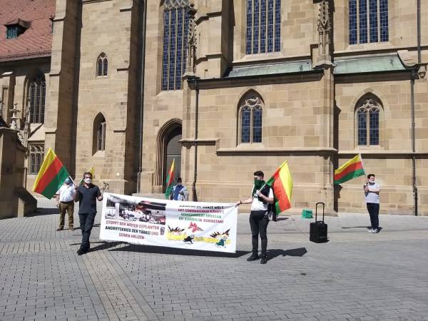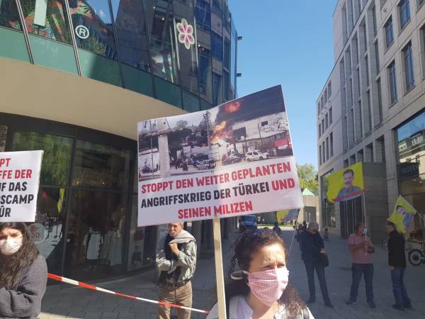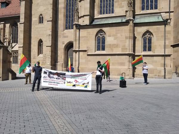 Семь активистов собрались сегодня на Килиансплац в Хайльбронне, чтобы привлечь внимание к военным преступлениям правительства ПСР (Партии справедливости и развития) в Курдистане. В выступлениях было отмечено, что нападения турецкого государства продолжаются без снижения их интенсивности, особенно на севере Сирии и в Южном Курдистане, и что это подрывает борьбу с распространением пандемии в Рожаве. Три женщины были убиты на прошлой неделе в результате атаки беспилотника на лагерь беженцев Махмур в Южном Курдистане. Активисты также призвали к эвакуации лагерей беженцев на греческих островах. Митинг прошел мирно и с соблюдением мер безопасности.