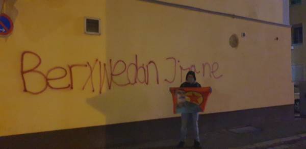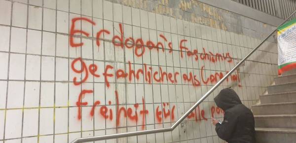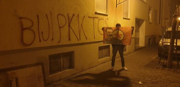 В Ганновере и Аугсбурге активисты курдского Молодежного революционного движения развернули баннеры и нарисовали граффити.