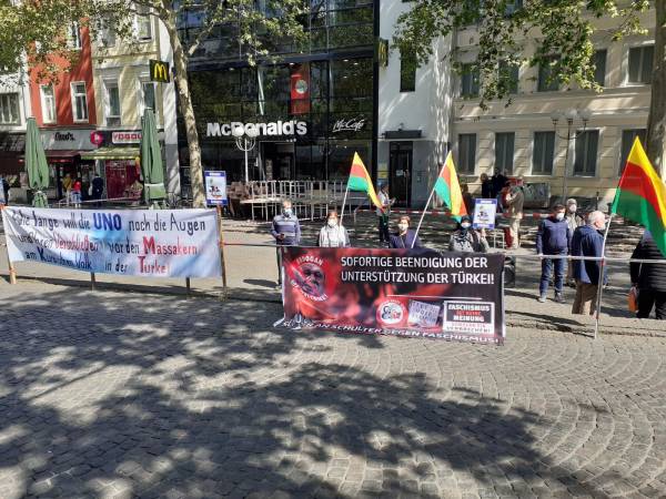 На площади Мира в Бонне состоялся митинг против оккупационных планов Турции в зонах обороны Мидия в Южном Курдистане. Активисты также протестовали против партии ДПК (Демократической партии Курдистана) из Южного Курдистана, которая сотрудничает с турецким государством и развернула тяжелое вооружение и войска в районе Зине Варте на краю партизанской зоны в горах Кандиль. Плакат гласил: «Как долго ООН будет закрывать глаза на массовые убийства курдского народа, совершаемые Турцией?».