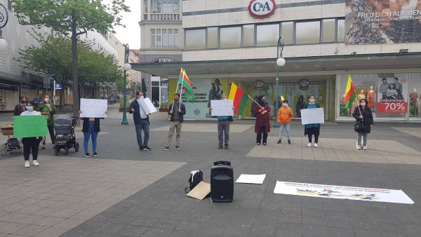 Акция протеста по поводу нападений Турции на Южный Курдистан была организована на Фридрихплац активистками из TJK-E. Они скандировали такие лозунги, как «Остановить массовые убийства в Курдистане!» и «Немедленно снять эмбарго с Махмура!» Собравшиеся соблюдали меры, принятые для сдерживания вспышки коронавируса.