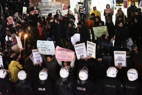 Депутат от ДПН (Демократической партии народов) Зюлейха Гюлюм и депутат РПТ (Рабочей партии Турции) Эркан Баш присоединились к акции, которая проходила на фоне массового присутствия полиции.
