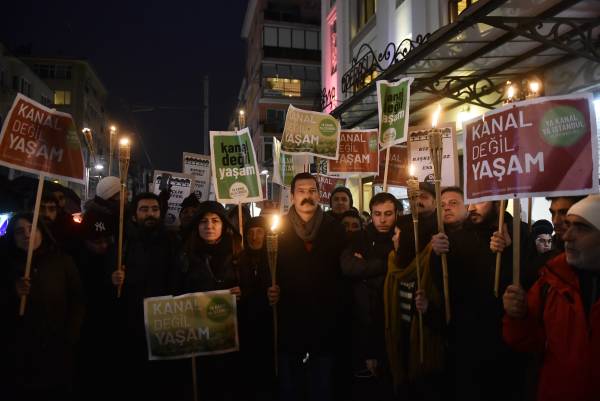Координационный совет инициативы «Либо канал, либо Стамбул» организовал в Кадыкее живую цепь с факелами в знак протеста в адрес разрушительного проекта канала «Стамбул», продвигаемого ПСР (Партией справедливости и развития), который уничтожит память города длиной в тысячи лет.