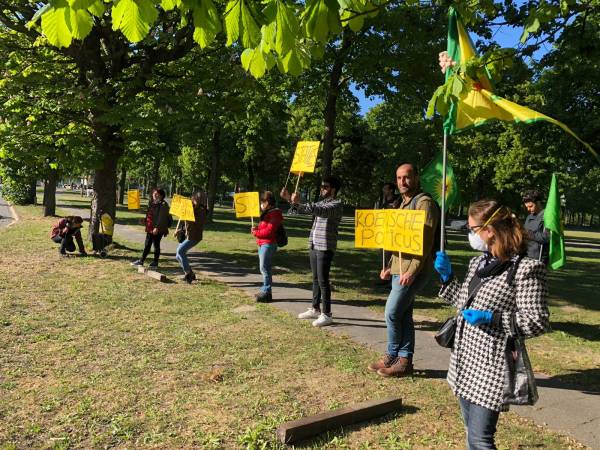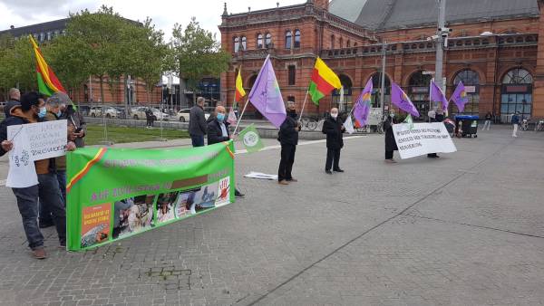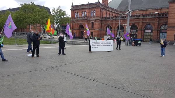 Одна из акций протеста прошла перед железнодорожным вокзалом Хильдесхайма. Активисты скандировали лозунги, осуждающие назначение государственных управляющих, и напоминали, что ДПН победила на выборах, а народ свободно и демократично проголосовал за нынешних сопредседателей муниципалитетов.
