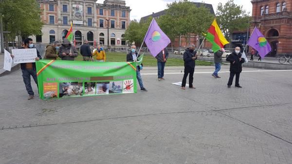В Гааге, Нидерланды, активисты также протестовали по поводу захвата муниципалитетов, управляемых ДПН, и задержания сопредседателей муниципалитетов от этой партии.