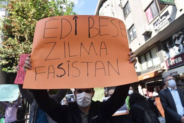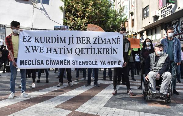 К митингу перед зданием ДПН в районе Кадыкей присоединились члены Молодежного совета, а также депутат парламента Муса Пироглу и сопредседатель стамбульского отделения ДПН Алиф Булут. Собравшиеся скандировали «Плечом к плечу против фашизма» и «Репрессии нас не запугают».
