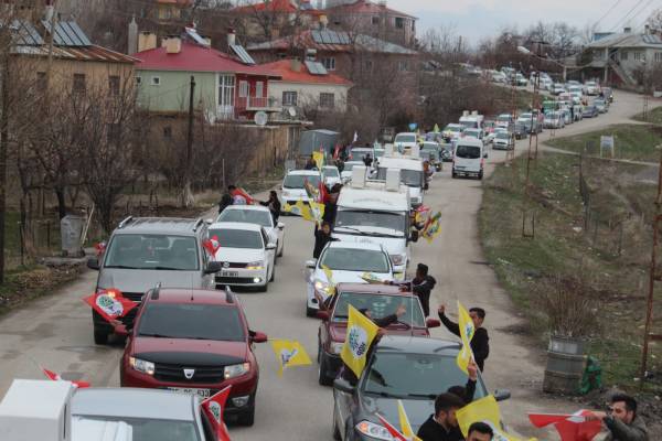 Отделение Демократической партии народов (ДПН) в Ване должно было завершить предвыборную деятельность, совершив поездку по городу сегодня, до завтрашних местных выборов. Тысячи автомобилей присоединились к колонне, которая выехала из района Геваш и отправилась в город Ван после экскурсии. Конвой был остановлен полицией на въезде в Ван, и ему было запрещено находиться в этом городе.