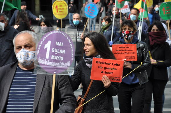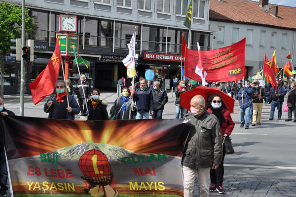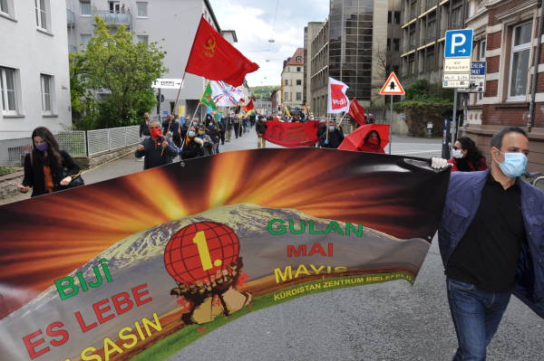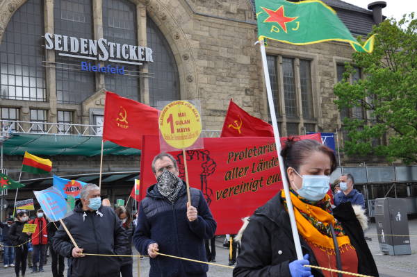 Первомайская акция была организована Ассоциацией демократических сил в Билефельде, Германия. В дополнение к акции, организованной в ограниченных условиях в соответствии с мерами предосторожности, установленными во время пандемии коронавируса, в городе было проведено еще семь праздничных мероприятий.