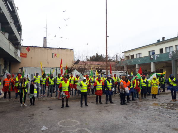 На протяжении всего маршрута активисты раздают информационные листовки и поют революционные курдские песни.