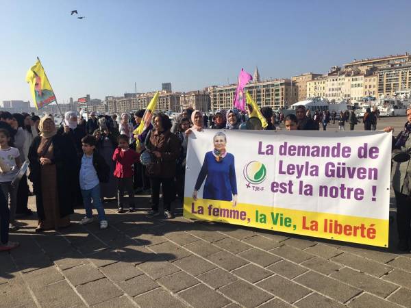 Женский совет Арин Миркан в Марселе поддержали голодающих, требующих прекращения изоляции курдского национального лидера Абдуллы Оджалана.
