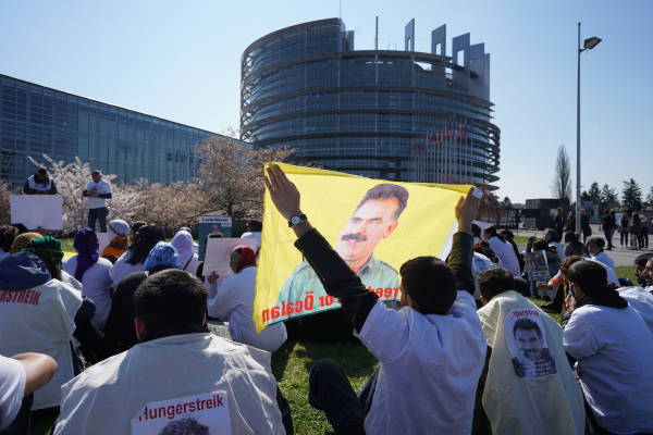 Активисты скандировали лозунги, требуя свободы для Оджалана и выражая свою поддержку голодающим активистам, в частности Лейле Гювен и Насиру Ягызу.