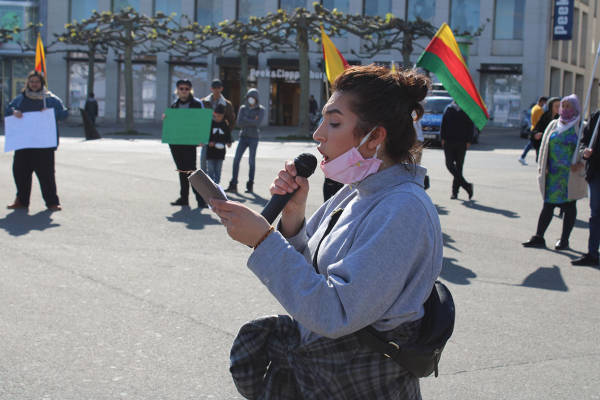 «Мы не хотим просто наблюдать, мы хотим действовать немедленно и призываем всех к действию! Давайте защитим достижения революции в Рожаве, людей в Махмуре, наших товарищей на фронте, находясь здесь, в Европе! Мы не будем молчать о войне против наших ценностей и против нашей революции! Давайте вместе возвысим наши голоса – против фашизма и за свободу!» – заявили организаторы в своем обращении к митингу.