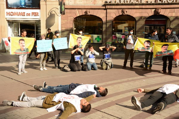 В речи, произнесенной во время акции, говорится, что 14 членов инициативы «Свободу Оджалану» объявили голодовку в Страсбурге 102 дня назад, и указывается, что Лейла Гювен голодает в течение 141 дня, Насыр Ягиз в течение 128 дней, а заключенные в течение 103 дней.