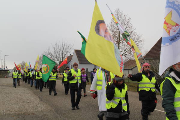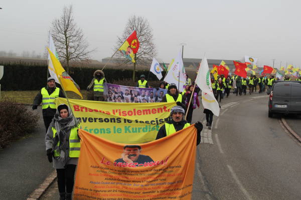 Марш был организован в поддержку сопротивления голодающих во многих городах, а также в знак осуждения международного заговора, в результате которого 20 лет назад был захвачен курдский национальный лидер Абдула Оджалан.