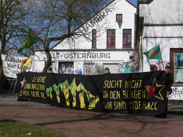 В самоуправляемом Центре действий и коммуникации «Альгамбра» в Ольденбурге все публичные мероприятия были отменены из-за карантинных мер по предотвращению распространения короновируса. Тем не менее перед Альгамброй прошла акция, которая была посвящена не только курдскому Новому году и фестивалю сопротивления, но также и Международному дню борьбы против расизма 21 марта.