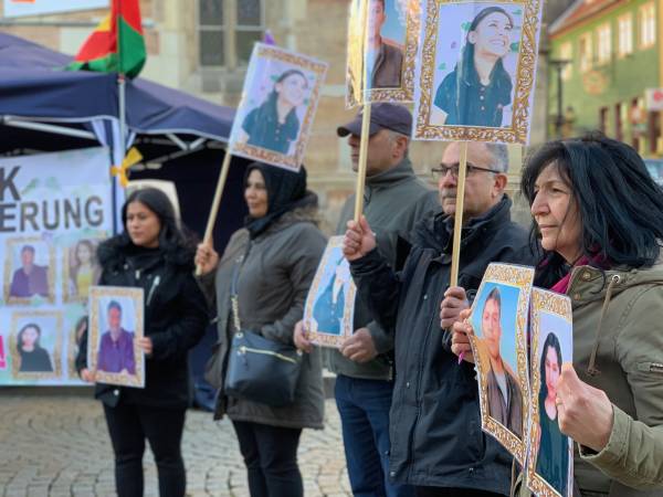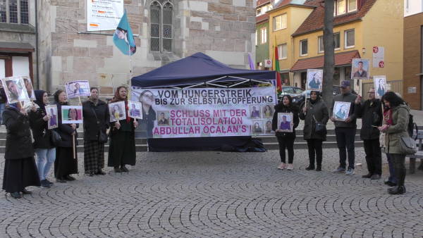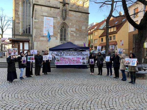 Активисты раздавали листовки в центре города, чтобы привлечь внимание к голодовкам и изоляции. Они держали плакаты с портретами членов сопротивления, которые покончили с собой во время голодовок, а вокруг палатки развесили транспаранты с надписями «От голодовки к самопожертвованию: изоляция Абдуллы Оджалана должна прекратиться» и «От голодовки – к свободе».