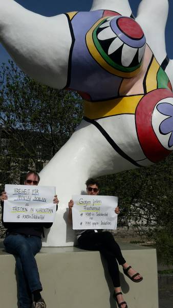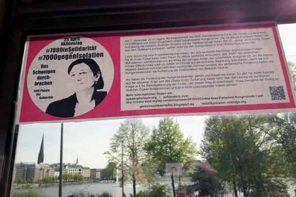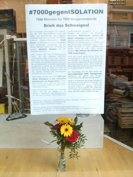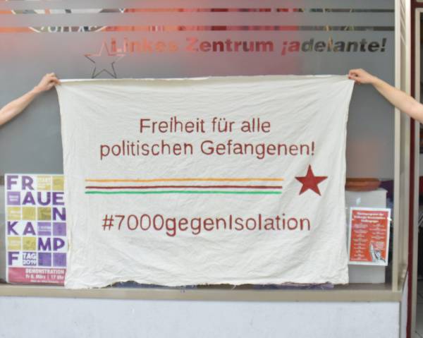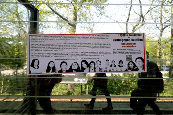 Кампания, организованная движением Taторт Kурдистан и феминистским движением "Давайте бороться вместе", называется "#7000 против изоляции" (# 7000gegenIsolation). Активистов просили проявить фантазию и развесить плакаты на видных местах немецких городов.