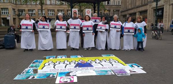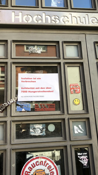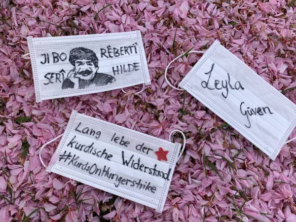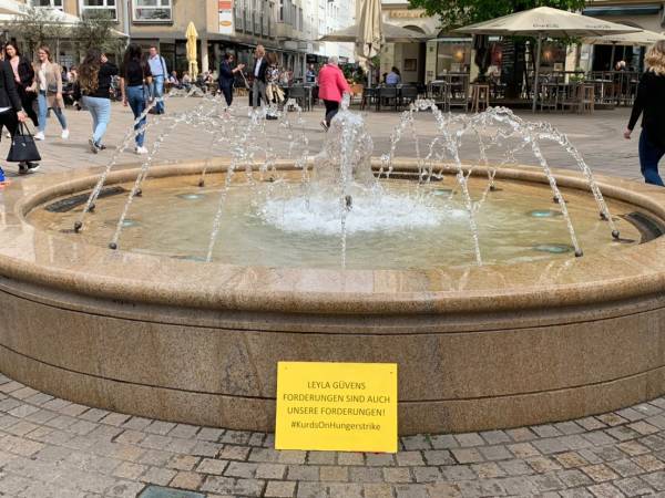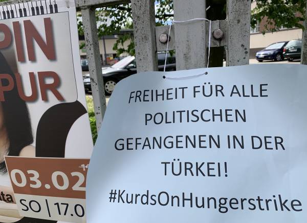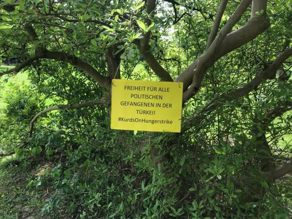 Многие плакаты напоминали о положении Лейлы Гювен и заключенных, на других изображены фотографии голодающих в Страсбурге и Южном Курдистане, Уэльсе и Канаде.