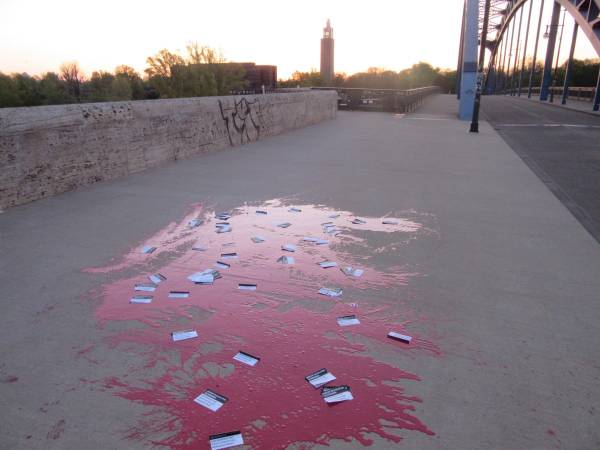 В Берлине и Магдебурге на площади были разлиты красные краски, чтобы привлечь внимание к состоянию здоровья голодающих.
