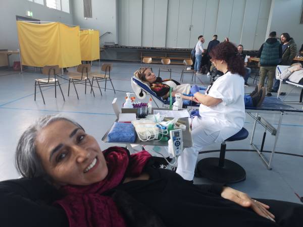 Ассоциация понтийских греков в 12 городах в Баден-Вюртемберге, Германия, 8 Марта организовала сдачу крови для медицинского центра Кобани. Элени С. произнесла речь от имени понтийских греческих женщин.