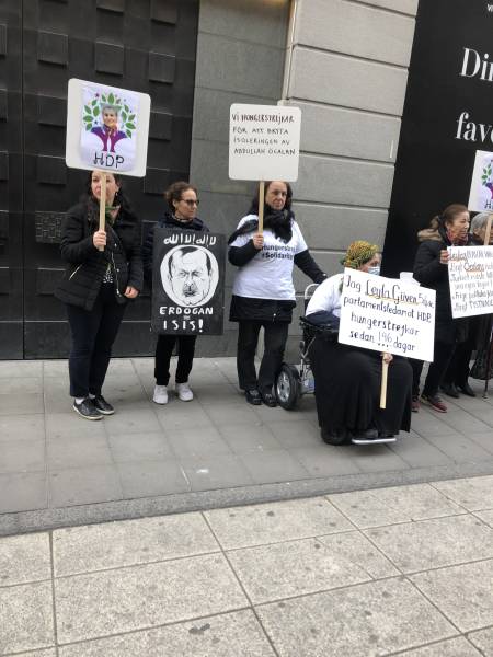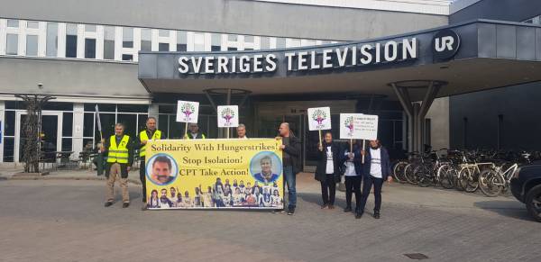 Курды, которые присоединились к голодовке 1 апреля, провели демонстрацию перед штаб-квартирой шведского государственного телевидения "SVT" в знак протеста против молчания шведских СМИ.