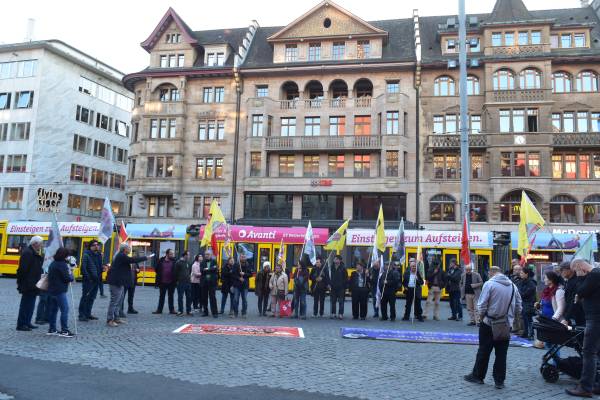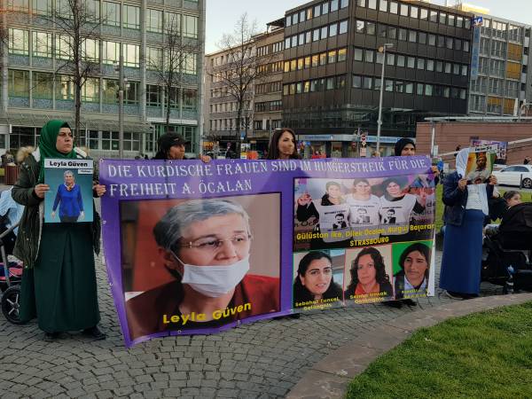 Женщины в Мангейме символически завязали рот и протестовали против молчания КПП и Совета Европы. Они показали, что кампания голодовок, возглавляемая сопредседателем КДО и депутатом ДПН от Хаккари Лейлой Гювен, продолжается с еще большей решительностью.