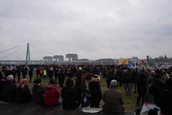 Тысячи людей собрались в Кельне, Германия, чтобы выразить протест против изоляции и поприветствовать участников голодовки.