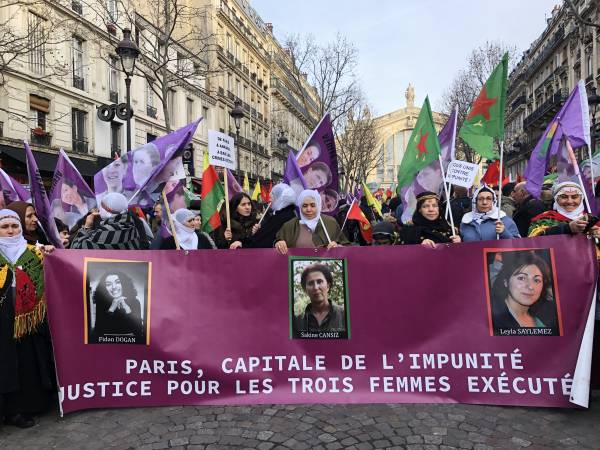 Курды и их друзья собрались в Париже, чтобы выразить протест по поводу убийства трех курдских женщин-революционерок в 7-ю годовщину их смерти.
