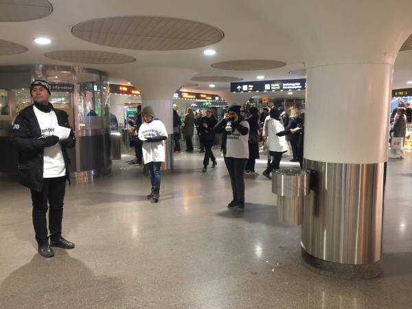 Голодающие раздавали листовки перед парламентом, на станциях метро и на площади Сергель Торг, чтобы информировать общественность об изоляции и голодовках против изоляции.