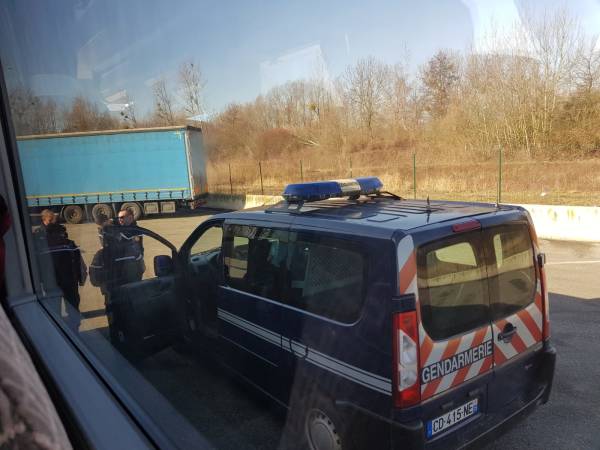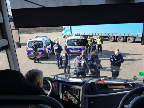 Когда марш запретили, активисты решили поехать во Францию на автобусе для участия в международной демонстрации. Автобус был остановлен на границе в полдень.