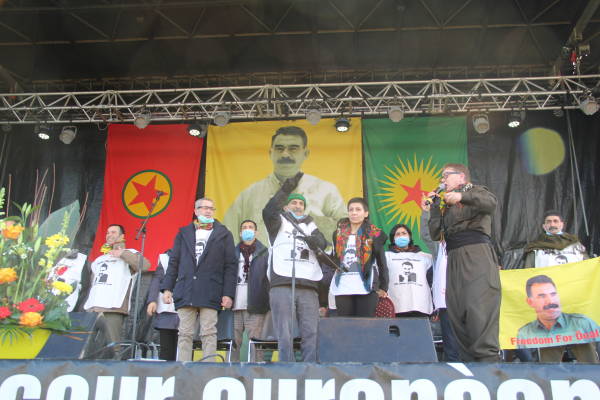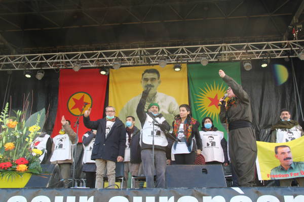 В субботу во французском городе Страсбурге состоялся центральный митинг, посвященный 20-й годовщине международного заговора, приведшего к аресту курдского национального лидера Абдуллы Оджалана 15 февраля 1999 года. 14 курдских активистов, которые проводят голодовку в Страсбурге в течение 62 дней, также присоединились к акции. Активисты вышли на сцену под лозунгами «Да здравствует наше сопротивление» и «Биджи Серок Апо» [Да здравствует лидер Оджалан].
