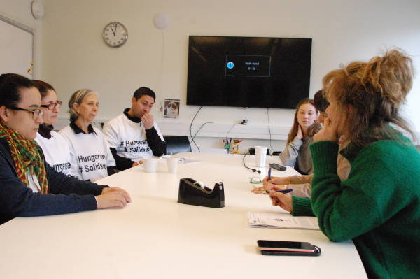 Голодающие посещают политические партии и НПО, вывешивают транспаранты и распространяют листовки, информирующие шведскую общественность о голодовках.