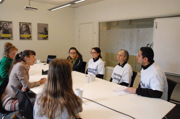 Курдские активисты, объявившие голодовку в Стокгольме, Швеция, требуя прекращения изоляции, наложенной на курдского национального лидера Абдуллу Оджалана, встретились с представителями Международной Амнистии Ами Хеденборг и Майей Аберг.